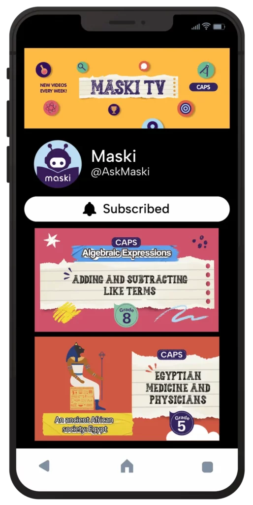 These bright, short videos are specially designed by leading educational experts to break down critical concepts for learners looking to level up their academic game, and for teachers looking for CAPS-aligned, pedagogically sound additional visual resources, freely available through our You Tube channel, Maski TV.